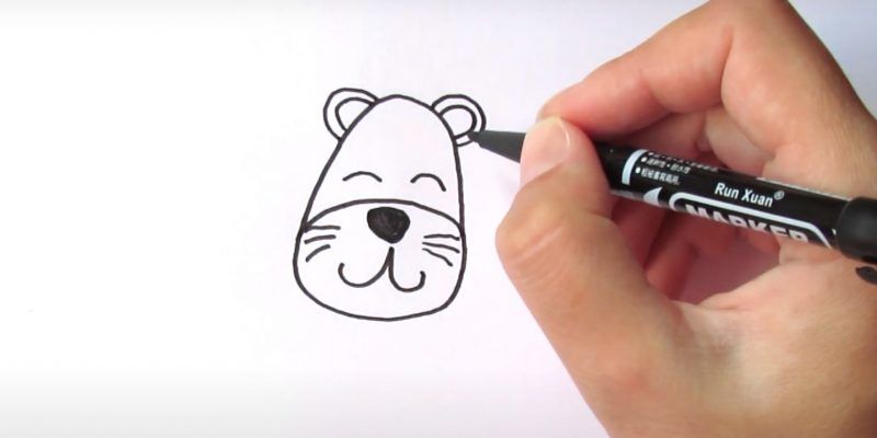 - Направете муцуна, като нарисувате носа, устата и брадичката.