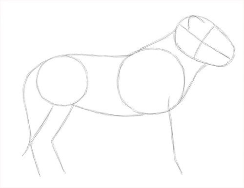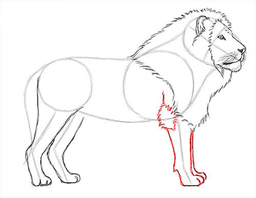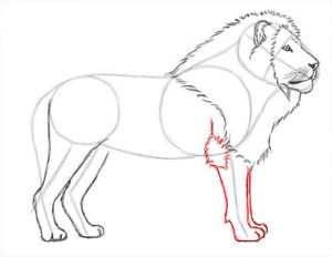 - Преминете към тялото. Dorisovyvayuem полу-овално тяло и издължени овали лапи, предната част ще бъде малко скрита зад гривата.