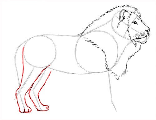 - Добавете още три линии, за да покажете къде ще са останалите лапи. Тъй като лъвчето е седнало, задният крак ще бъде сгънат, полукръгъл отпред и сгънат отзад.