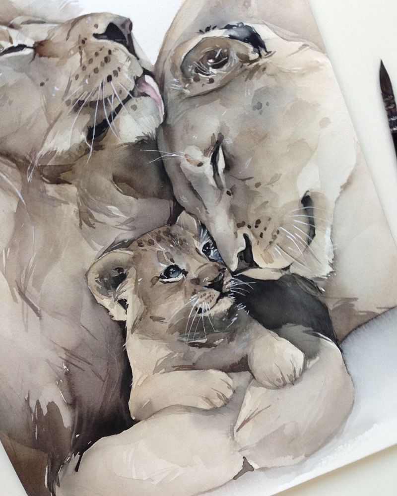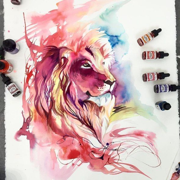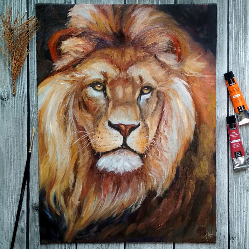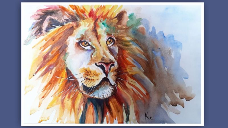 Това е краят на картината и вече знаете как да нарисувате лъв с акварелни бои.