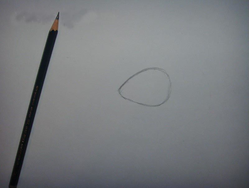 Започнете с хоризонтално разположен овал. Намерете центъра на лявата страна на овала, намерете и центъра на долната част на фигурата и ги свържете с дъгообразна линия. Удължете линията с един сантиметър и начертайте точка.