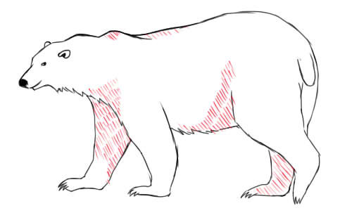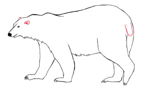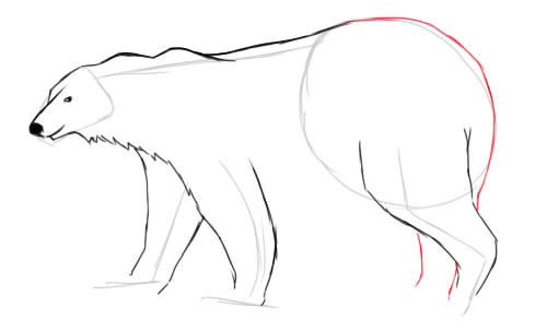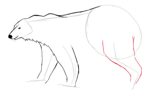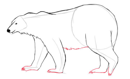 Нарисувайте горната лапа от дясната страна на тялото, а другата лапа - от лявата страна на същото ниво. Не забравяйте и ноктите.