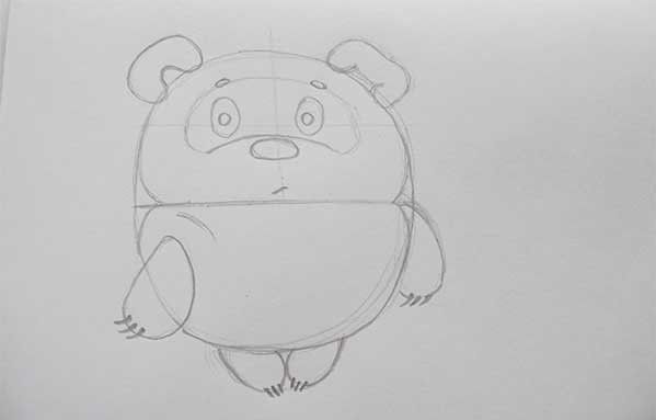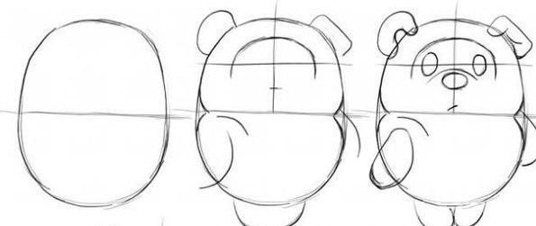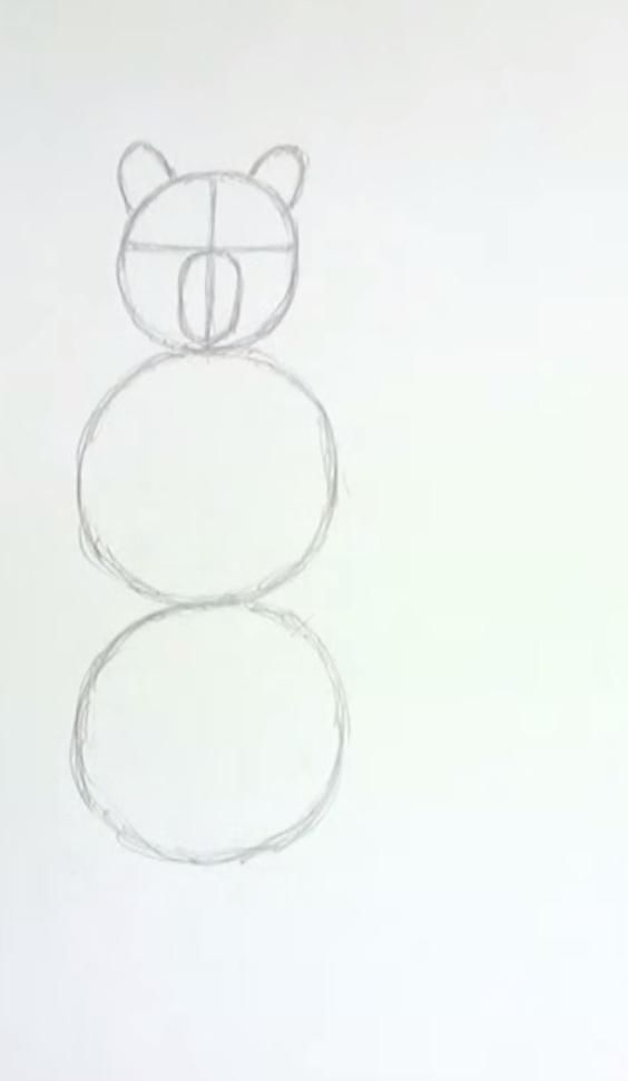 Те се намират в горната част на главата на мечето. Начертайте полукръгове, които се допират до линията на главата. Разстоянието между тях е едно ухо.