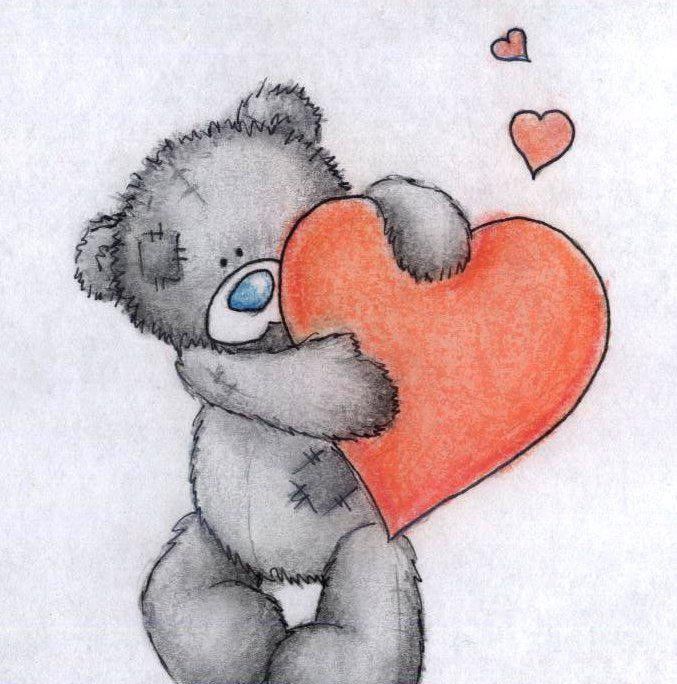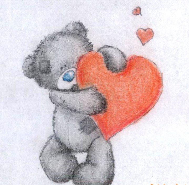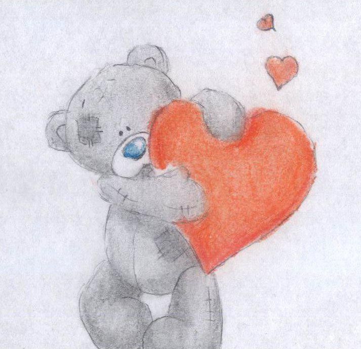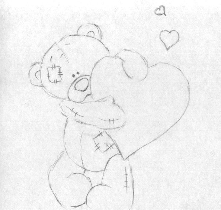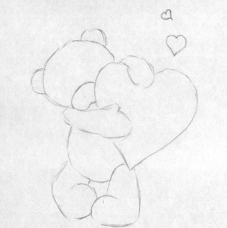 Мечешките лапи държат голямо сърце. Не можете да видите торса зад него. Не забравяйте, че оставихме място в долната част на главата. Ето къде ще се намират горните две части на сърцето. Но ние не рисуваме сърцето докрай.