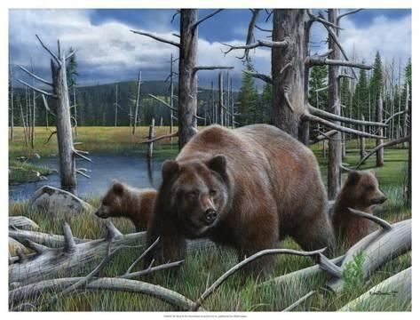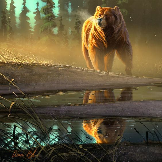 Лапите са в различни позиции. Мечката отива да търси риба.