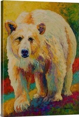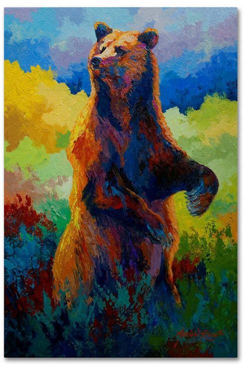 Мечката е застанала настрани, а очите ѝ са насочени към дясната страна. Той е в изправено положение.