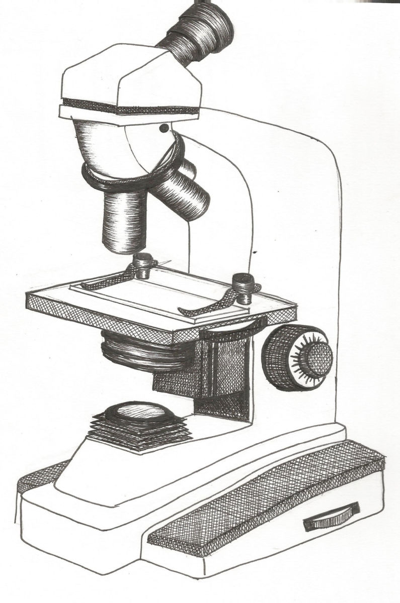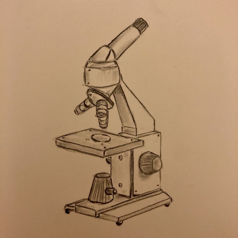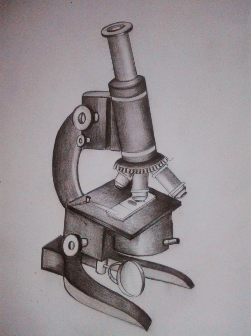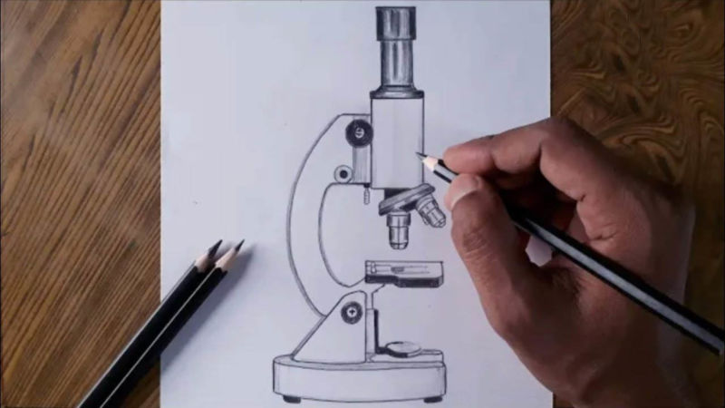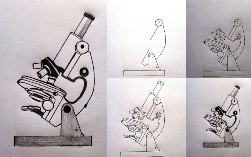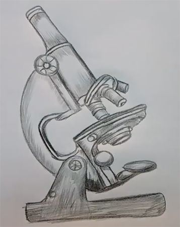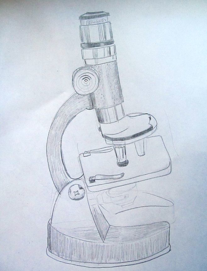 Как да нарисуваме микроскоп с молив: ред на рисуване и оцветяване