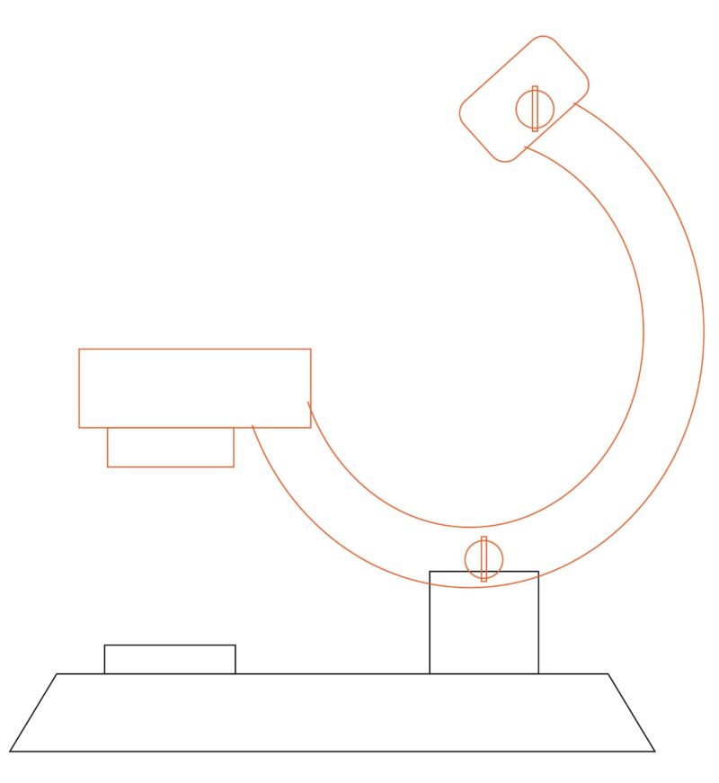 - В горния край на заоблената стойка трябва да се нарисува правоъгълник, който да представлява тръбата, а в съединението може да се добави кръгъл лост, за да се регулира ъгълът на тръбата.
