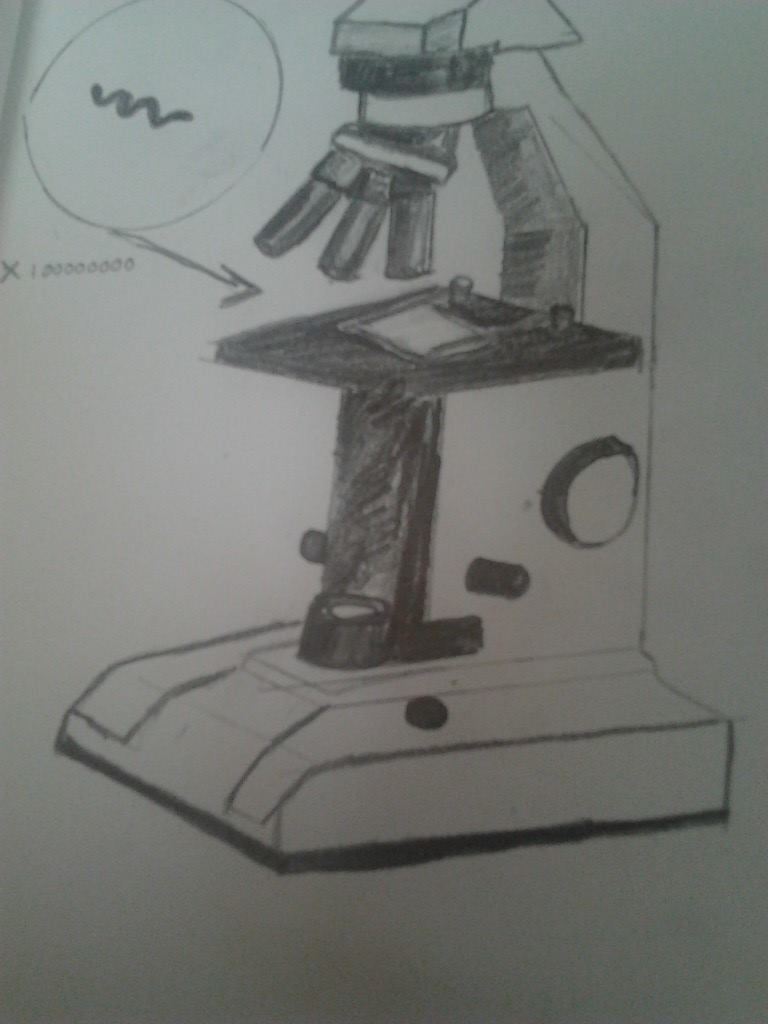 - Когато не разполагаме с реално устройство, можем да намерим негова снимка или добър, подробен чертеж. За да се опита да рисува без природата, човек трябва да познава микроскопа по усет, както се казва, и да пренася образа му по памет.