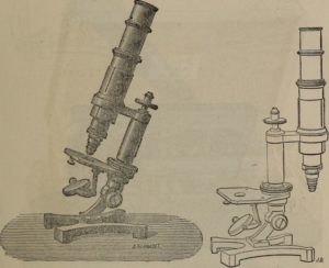 Обичайният училищен оптичен инструмент се състои от плоска основа, поставена на маса, вертикална стойка, най-често извита навън, и тръба с лещи, през които се наблюдава светът на микрочастиците.