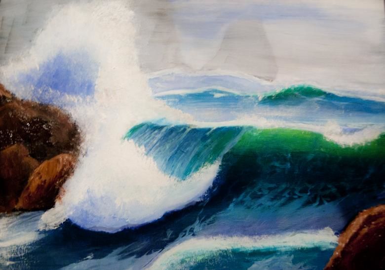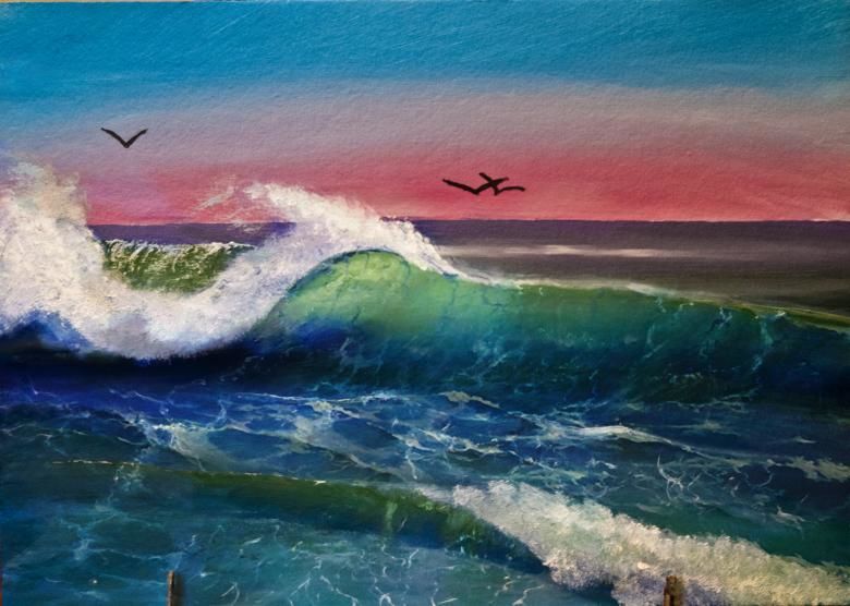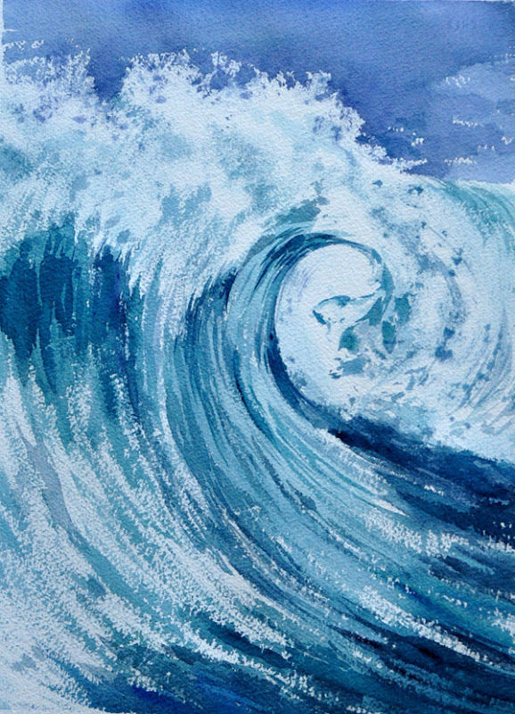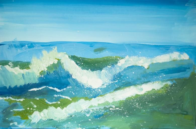 Можете да нарисувате бълбукащо море с гваш, който има наситени цветове, не се разтича по хартията (като акварела) и съхне бързо (за разлика от маслото):