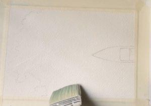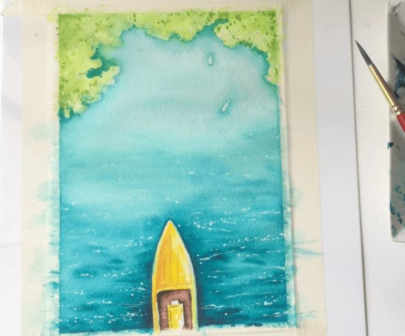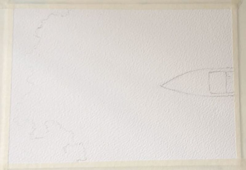 - Скицирайте, като отделите линията на хоризонта и определите бреговата линия. Ако желаете, скицирайте една, две или три лодки.