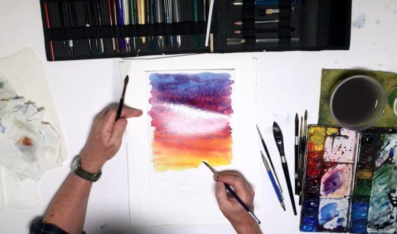 - Опитайте се да играете с цветовете, за да видите как работят върху хартията и как се смесват помежду си. Заслужава си да се вземат проби (защото цветовете в тубата може да са различни от тези на хартията).