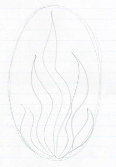 Вътре в ограничената окръжност трябва да се нарисуват зигзагообразни огнени езици, които са малко по-ниски на преден план и достигат най-високата си точка в центъра на горенето.
