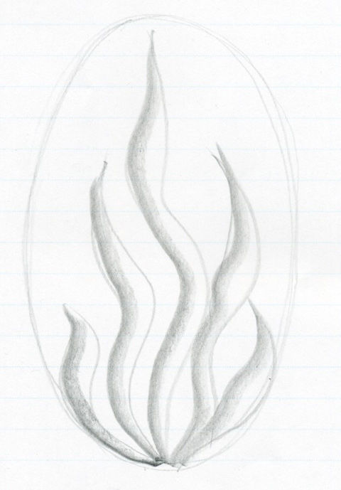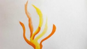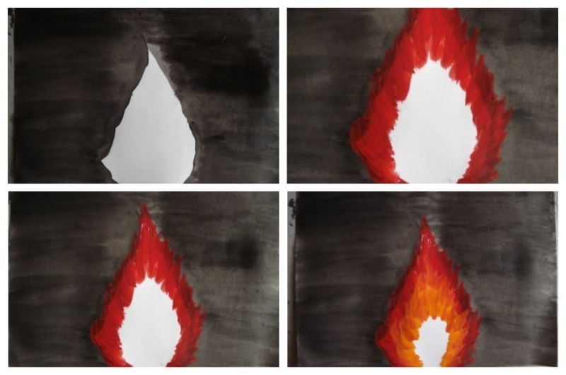 - С леки щрихи на мек молив първо се засенчва централната част на пламъка. В същия полупрозрачен тон в средните части на езиците на нарисувания пламък се появяват светли линии.