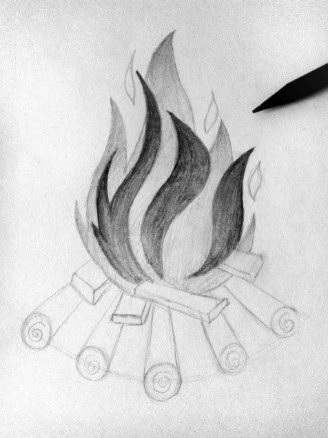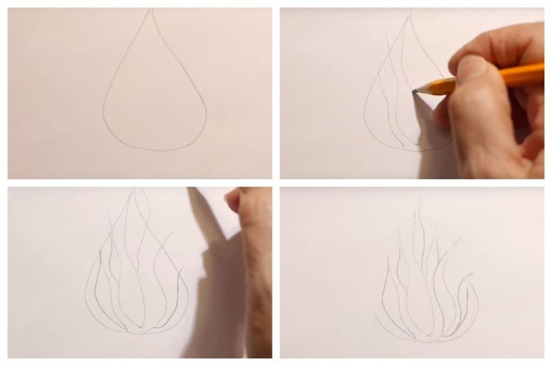 Как да нарисуваме огън в рисунка с молив: лесни рисунки за деца и начинаещи