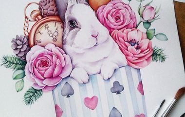 Запълнете корема със светложълто, както и вътрешната част на ушите. Нарисувайте шала под формата на вертикални ивици, като редувате зелен и бял цвят.