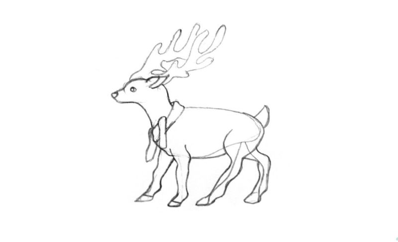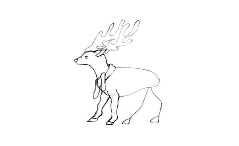 Нашият северен елен има тънък врат, около сантиметър. Затова шалът ще бъде малък. Можете да проявите творчество и да го нарисувате както искате.