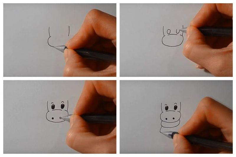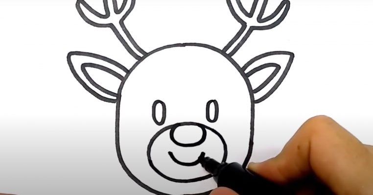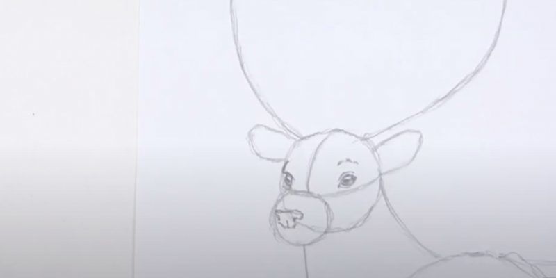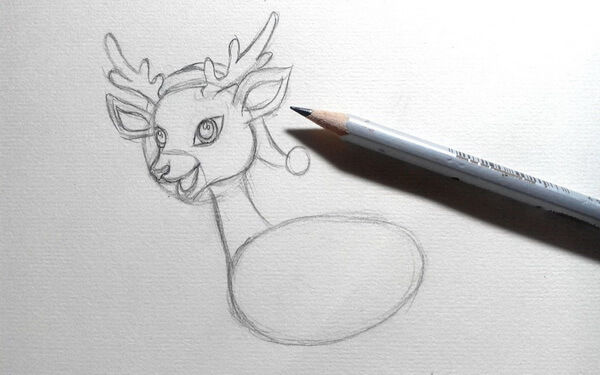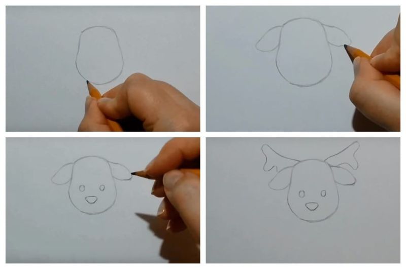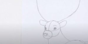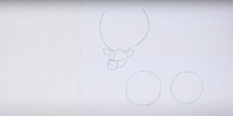 През краищата на рогата прокарайте дъгообразна линия. След това нарисувайте кръг с овал в долната му част.