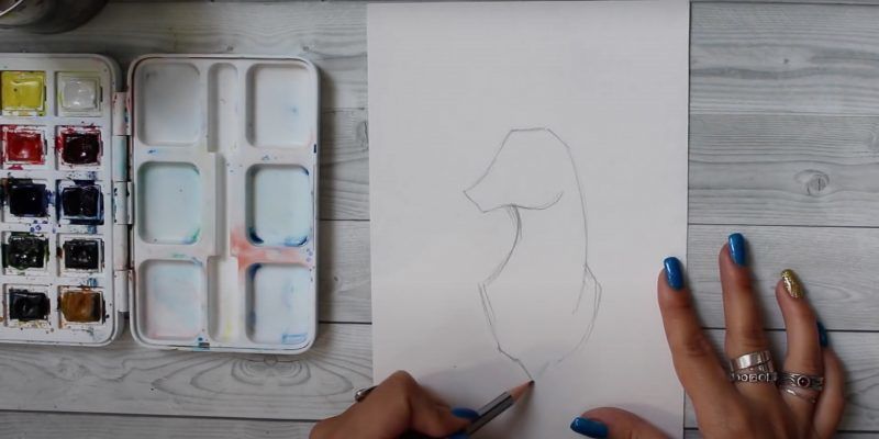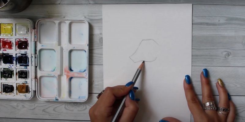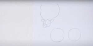Начертайте кръг и от центъра на страните му направете кръгли линии, които се съединяват в долната част. Тези линии трябва да приличат на овал. Не забравяйте за вътрешността на тази фигура.
