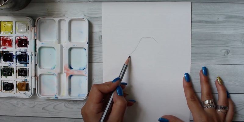 Вземаме обикновен молив и започваме да творим. Нарисувайте круша без връх. Тя ще бъде свързана в горната част с дъгообразна линия. Тя е сплескана отстрани.
