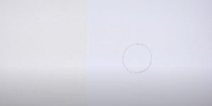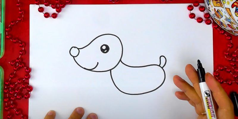 От центъра на долната страна на кръга прокарваме вертикална линия надолу. Линията не трябва да се допира до линията на овала. И до края на рисунката си се усмихна.