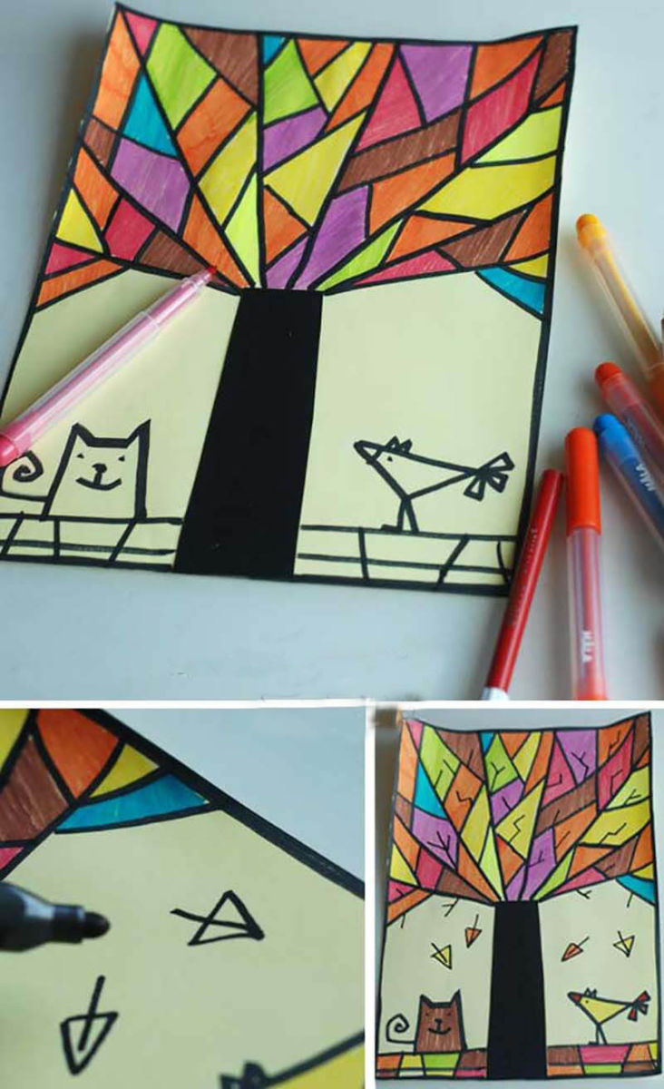 Есенно дърво с флумастери