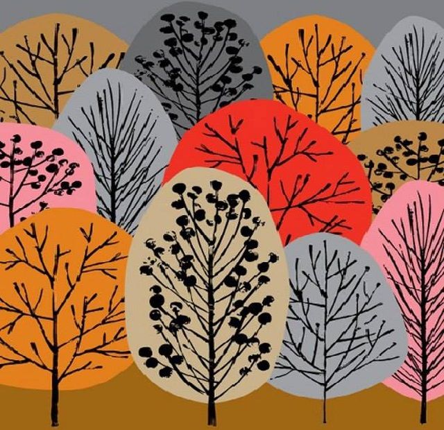 На земята под дърветата могат да се изобразят паднали листа в по-бледи цветове (като се използва същият метод на забиване).