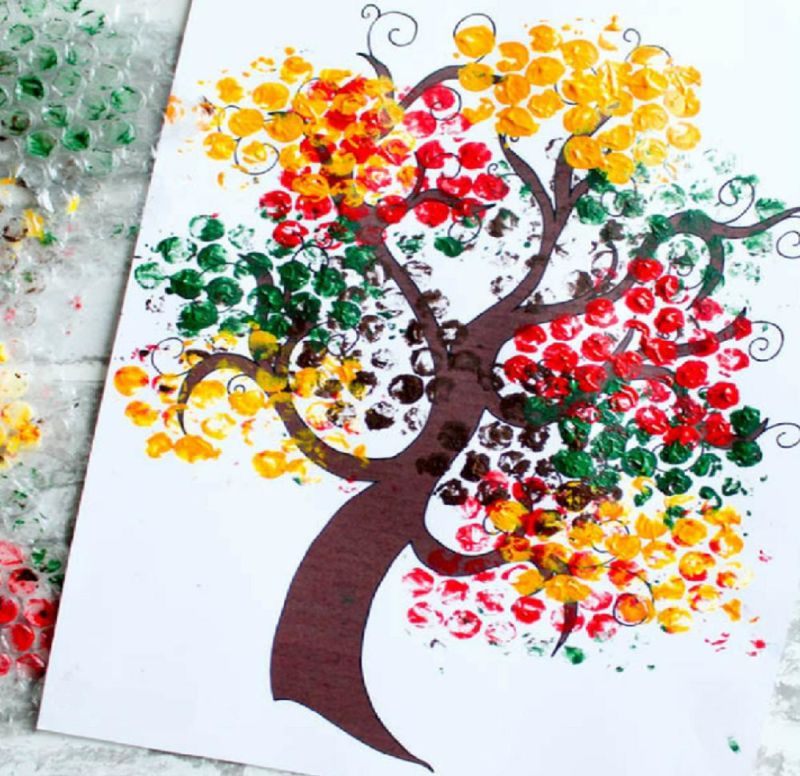 Есенно рисуване с фолио от балончета