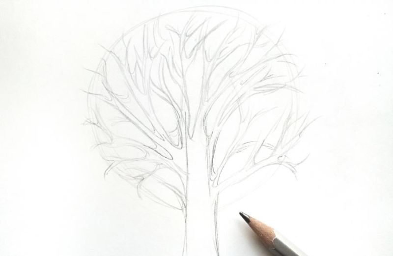 Подгответе флумастери и бял лист хартия. Тази техника е най-класическата, но изисква минимални умения за рисуване. С кафяв флумастер нарисувайте ствола на дървото и постепенно добавяйте все повече клони. Веднага след това със същия флумастер оцветете клоните.