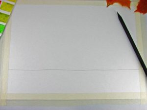 Подгответе се за класическия метод на рисуване. Необходими са ви цветни моливи, лист хартия, гума и обикновен молив. Нека се опитаме да нарисуваме есента заедно с децата. Начертайте линия в средата на листа с обикновен молив (очертаване на хоризонта).