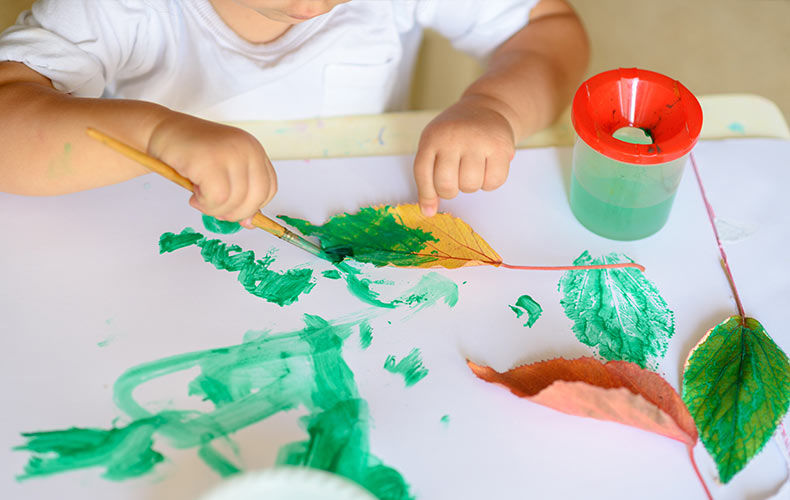 Една от най-разпространените техники за рисуване. Разходете се в парка или в гората и съберете листата, които ви харесват. Опитайте се листата да са цели, чисти и, разбира се, да не са изсъхнали. Пригответе си чист лист хартия (можете дори да го оцветите), малко акварел или гваш, четка и вода.