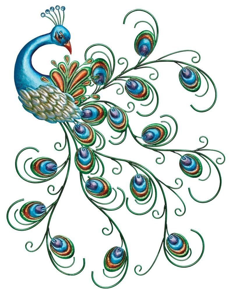 Нарисувайте око. Нарисувайте четири "близалки на клечка" върху главата на пауна. Нарисувайте перата на по-малкото крило, довършете рисунката на краката.