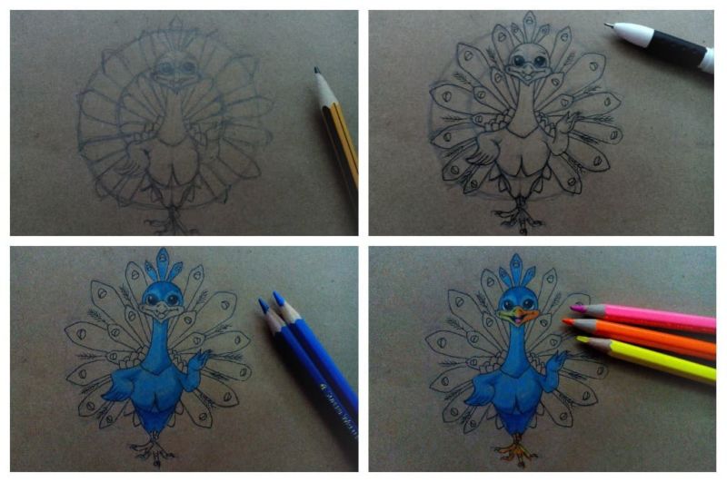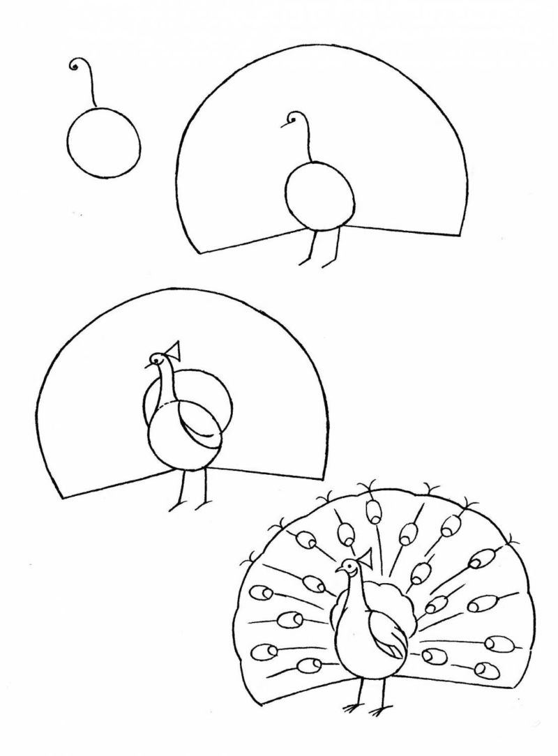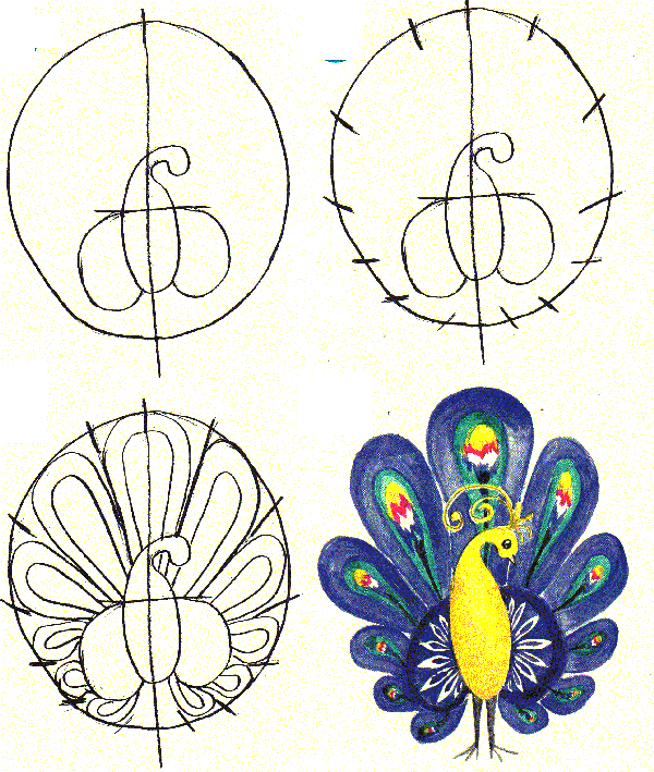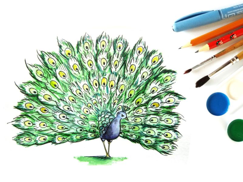 Как да нарисуваме паун с молив и боя стъпка по стъпка: общи насоки за начинаещи художници и деца