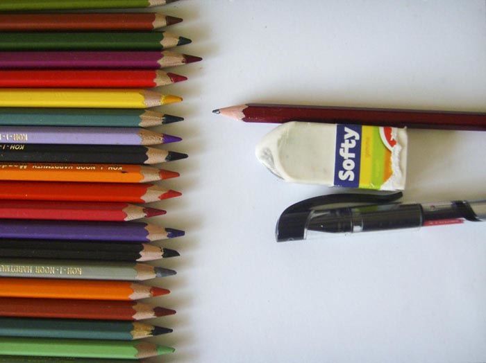 Представете си малки детски химикалки и ги нарисувайте с големина около половин сантиметър. От тях прокарваме две линии. Те трябва да са общо четири. Това е гербът на пауна. От последното перо от лявата страна рисуваме дървесна кора, малка, сантиметър или два, насочена наляво.