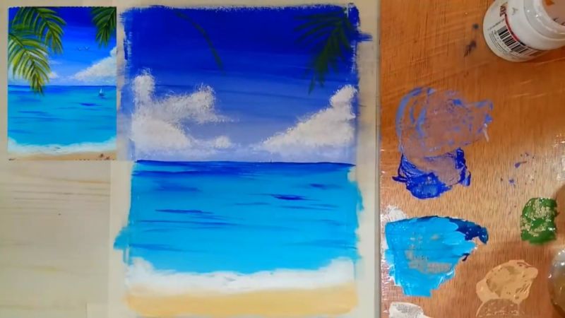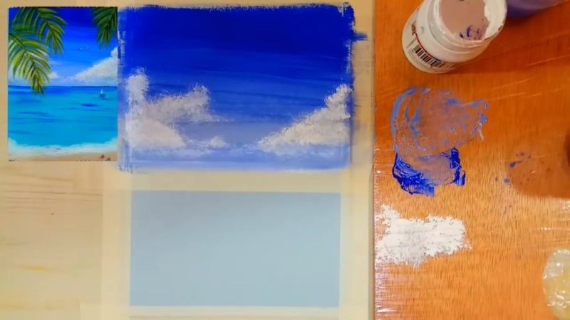 - Облаците се рисуват над острова и им се придава всякаква форма - плоска или вълнообразна.