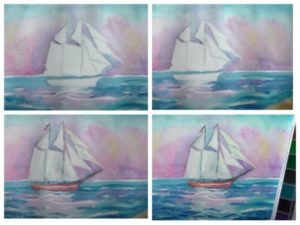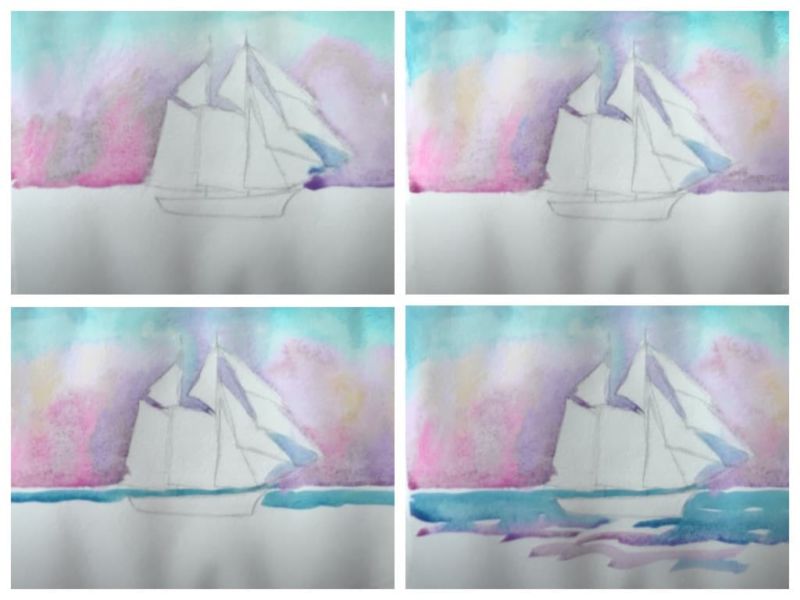 - За водата се рисуват вълнообразни линии. Във водата ще има отражение на платноходка.