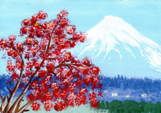 - След като изсъхне, нарисувайте още, а след това детайлизирайте растенията, като подчертаете местата с червен молив. Небето се засенчва и се обработва с влажна четка, за да изглежда истинско, а това става точка по точка.