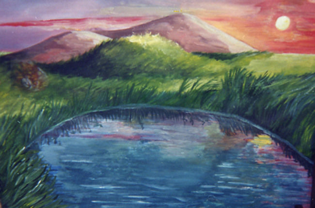 - Между езерото и планините е оставено пространство, в което по желание може да се нарисуват къщи или зеленина.
