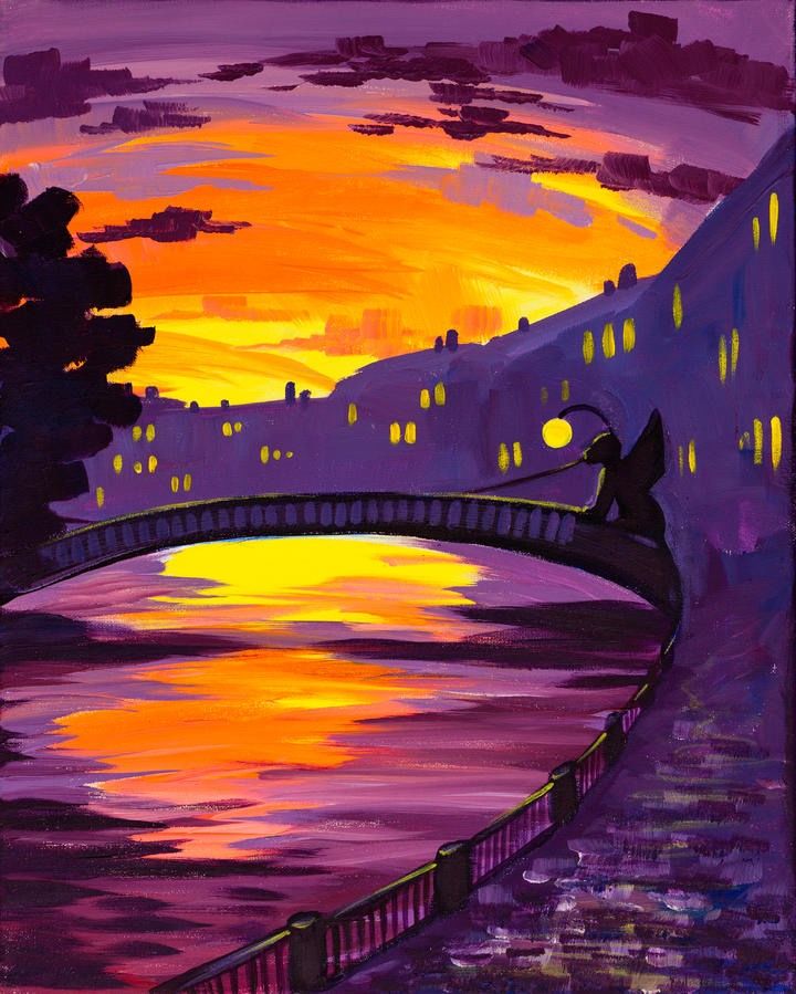 Нощният град привлича с мистерията и светлините си, защо да не нарисувате такъв пейзаж: