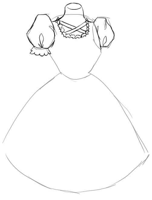 - Както и преди, започнете да рисувате горната част на облеклото.