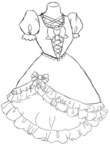 - Балната рокля може да е с презрамки или да е пристегната с корсет. Ремъците са нарисувани като две вертикално разположени елипси без дъно.