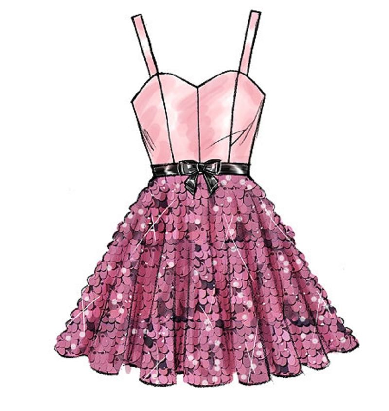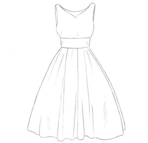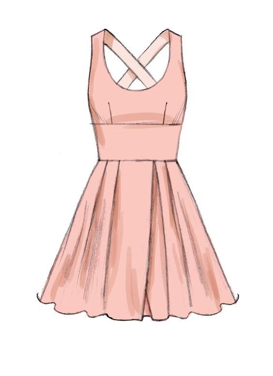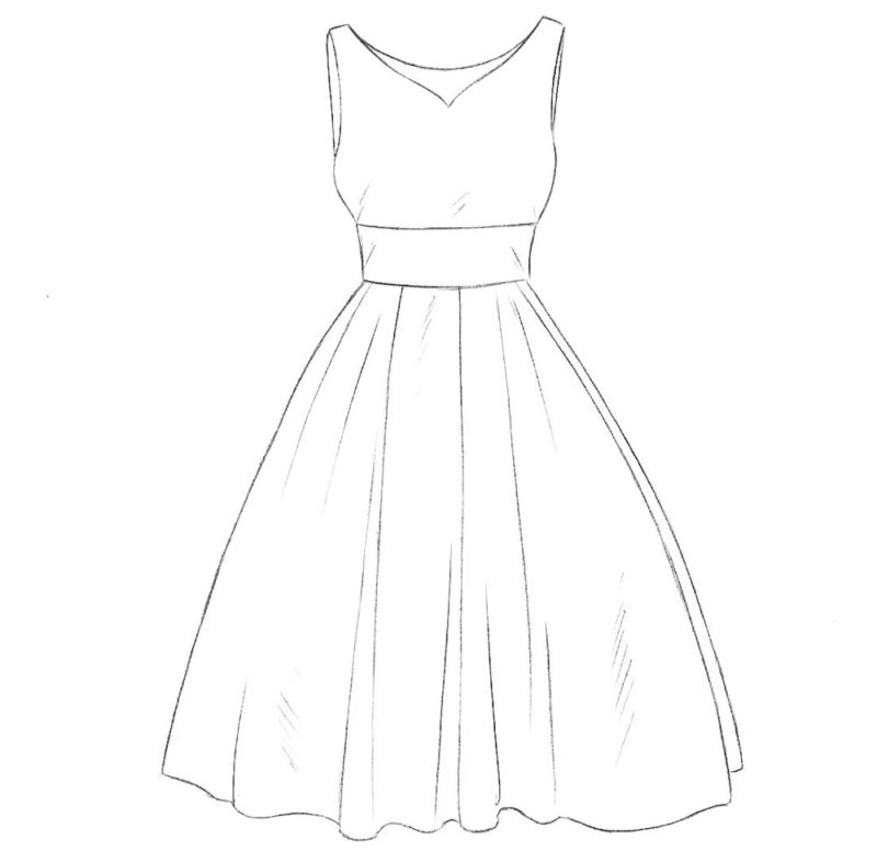 Като начало трябва да нарисувате прост модел с V-образно деколте и пола със средна дължина. Пригответе си молив, лист хартия и гума за творческия процес. Ако е необходимо, можете да изберете рокля, която да скицирате (всяка опция, която ви харесва):