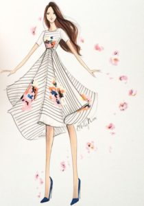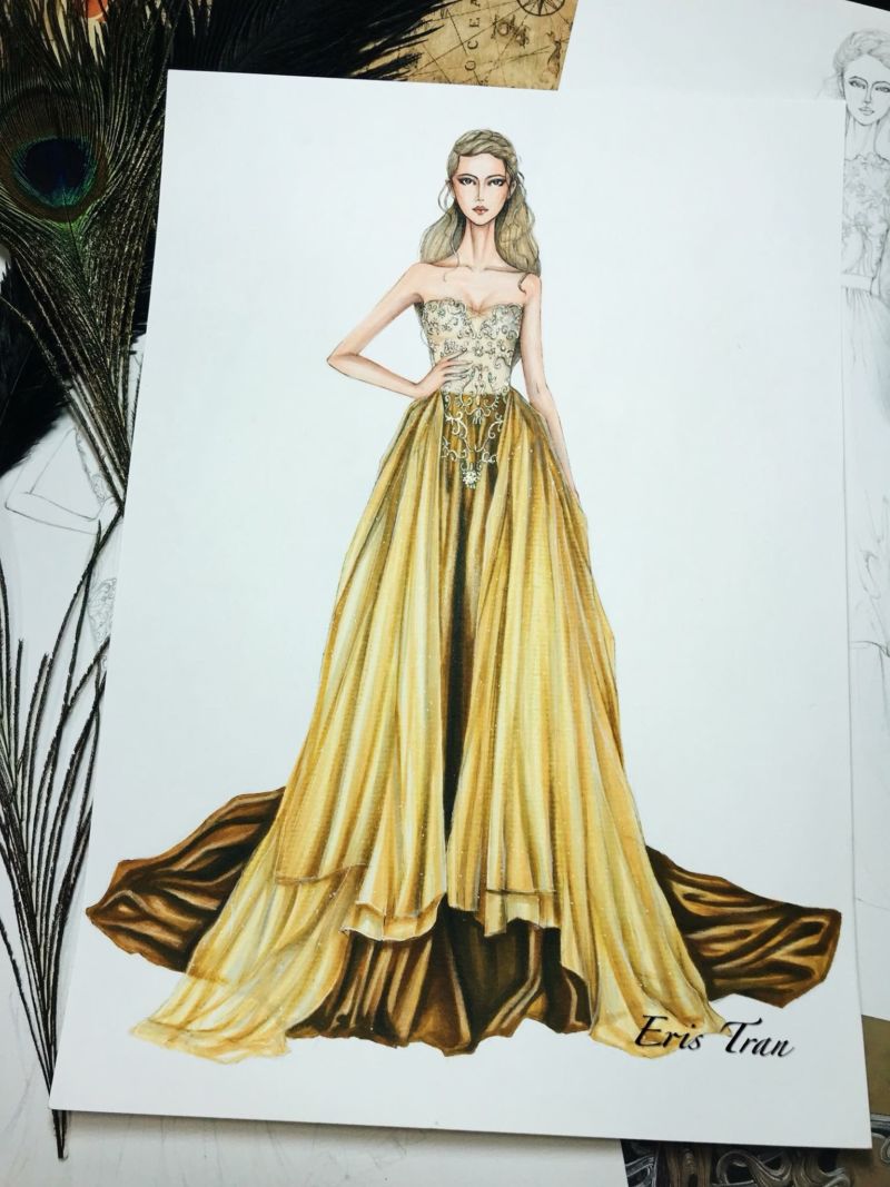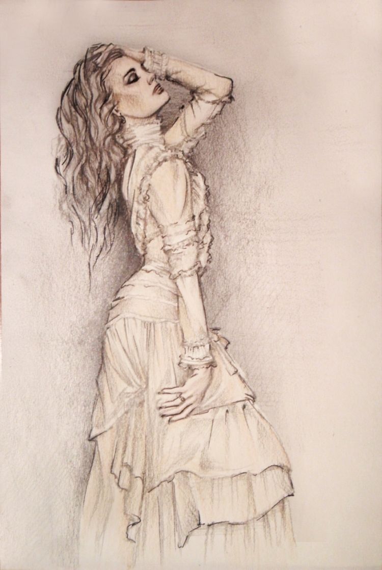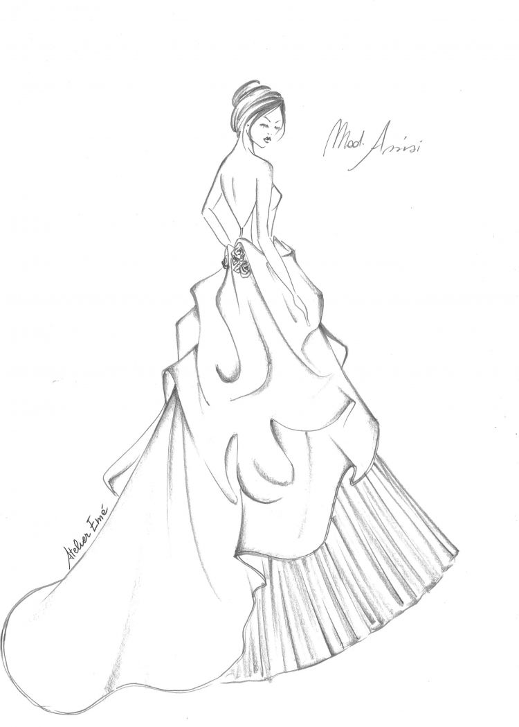 - Важно е художникът да си представи приблизителния ръст на модела, за да намери правилните пропорции на корсажа и полата.