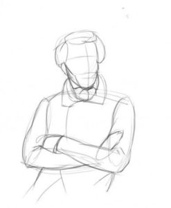 - След като са изпълнени основните изисквания за рисуване на мъжкото тяло, трябва постепенно да нарисувате силуета на поета по отношение на оригиналните портрети. Всички линии се чертаят с мек молив, без да се натискат прекалено силно, така че ако нещо се обърка, да може да се изчисти или коригира.