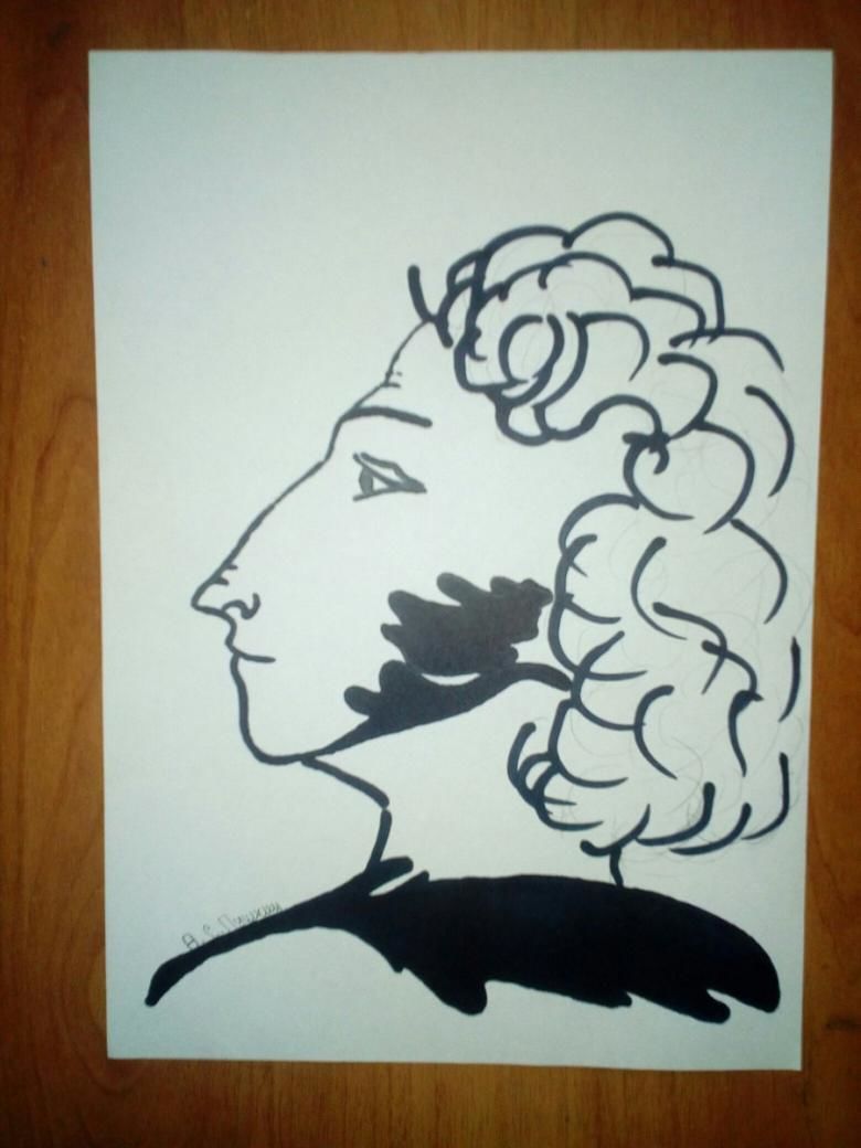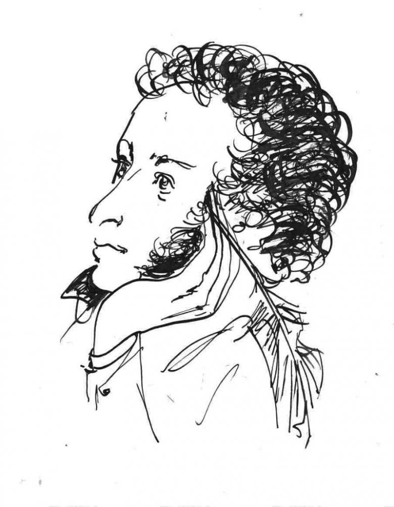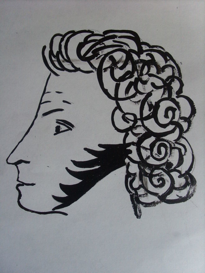 Сред изображенията на Пушкин има една доста известна скица, нарисувана с туш, която по всяка вероятност всеки е виждал като илюстрация на негови произведения или дори в училищен учебник по руска литература.