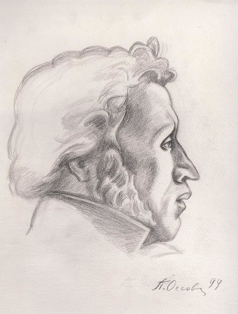 Тази добре позната скица на профила на Пушкин поетът небрежно си е начертал с гъша писалка в ъгъла на черновата си. Тя може да бъде взета под внимание при очертаването на собствения ви конспект.