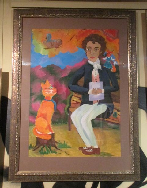А какво ще кажете, ако Пушкин е облечен в церемониален костюм според каноните на онова време, на фона на бална зала и елегантни дами в рокли със съпрузите си, които се вихрят в танц. Всичко зависи от вашето въображение.