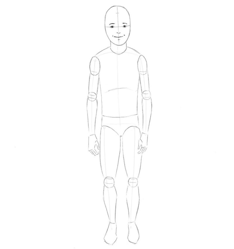- Опитайте се да скицирате силует, да очертаете ясно тялото, главата, ръцете и краката. Очертайте очите, устните и носа, нарисувайте ушите.