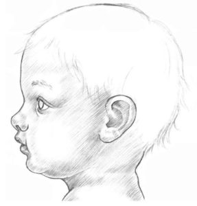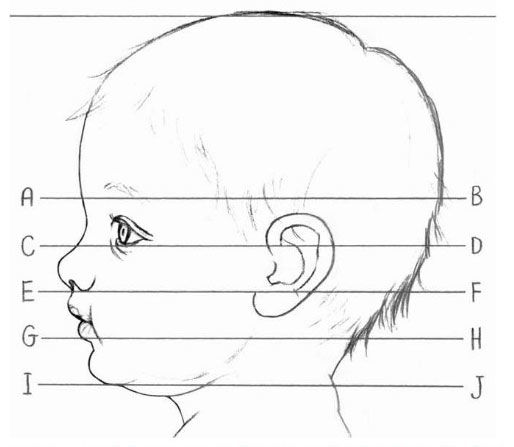 P.S. Преди да прочетете по-нататъшния текст, ви съветвам да се върнете назад и да си припомните анатомията на лицето на бебето. Тук Нека разгледаме портрет на бебе в профил: